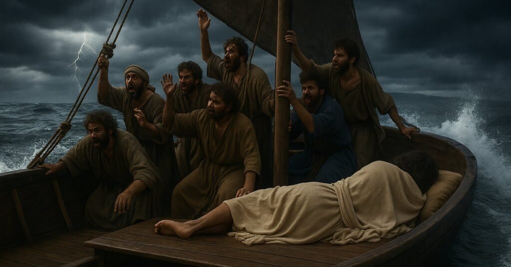 O episódio da tempestade no Mar da Galileia — chamado também de Lago de Genesaré — situa-se em uma região sujeita a súbitas mudanças climáticas. Ventos frios descem das colinas vizinhas e colidem com o ar quente que paira sobre as águas, produzindo fortes redemoinhos. Os discípulos, muitos deles pescadores experientes, conheciam bem esse fenômeno. Ainda assim, aquela “grande tempestade” (Mc 4:37) superou qualquer expectativa. Enquanto as ondas inundavam o barco, Jesus Cristo, exausto após um longo dia de ensino, dormia sobre um travesseiro na popa. A cena revela o verdadeiro mistério da Encarnação: o Deus Todo-Poderoso que escolhe participar plenamente da nossa fragilidade humana, inclusive do nosso sono.